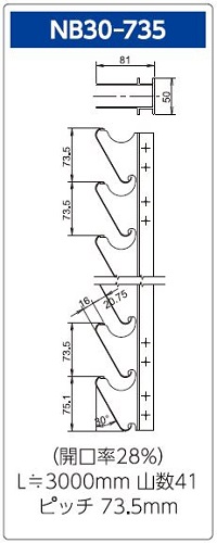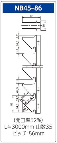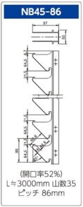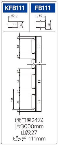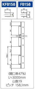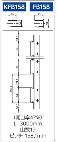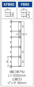 ストリンガーのジョイントは、専用ジョイントを使用します。ストリンガーの内側にジョイントを挿入し側面の穴を合わせて、外側から外側からそれぞれビス4本で固定します。FB100・KFB100以外のストリンガーには各山側面に2箇所ずつジョイント用の穴が開いています。パネルピッチが100mm未満のストリンガー(FB90·KFB90·NBタイプ)は、ストリンガー連結部を中心に、外側の穴同士と専用ジョイントの穴を合わせることで、正しくモジュールが決まります。また、パネルピッチが100mmより大きいストリンガー(FB111~-KFB111~) については、ストリンガー連結部を中心に、内側の穴同士と専用ジョイントの穴を合わせることで、正しくモジュールが決まります。
