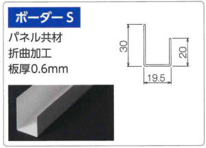パネル端部にボーダーをはめ込み、上からビス止めします。ビスはパネル3枚につき1か所を目安に取り付けます。